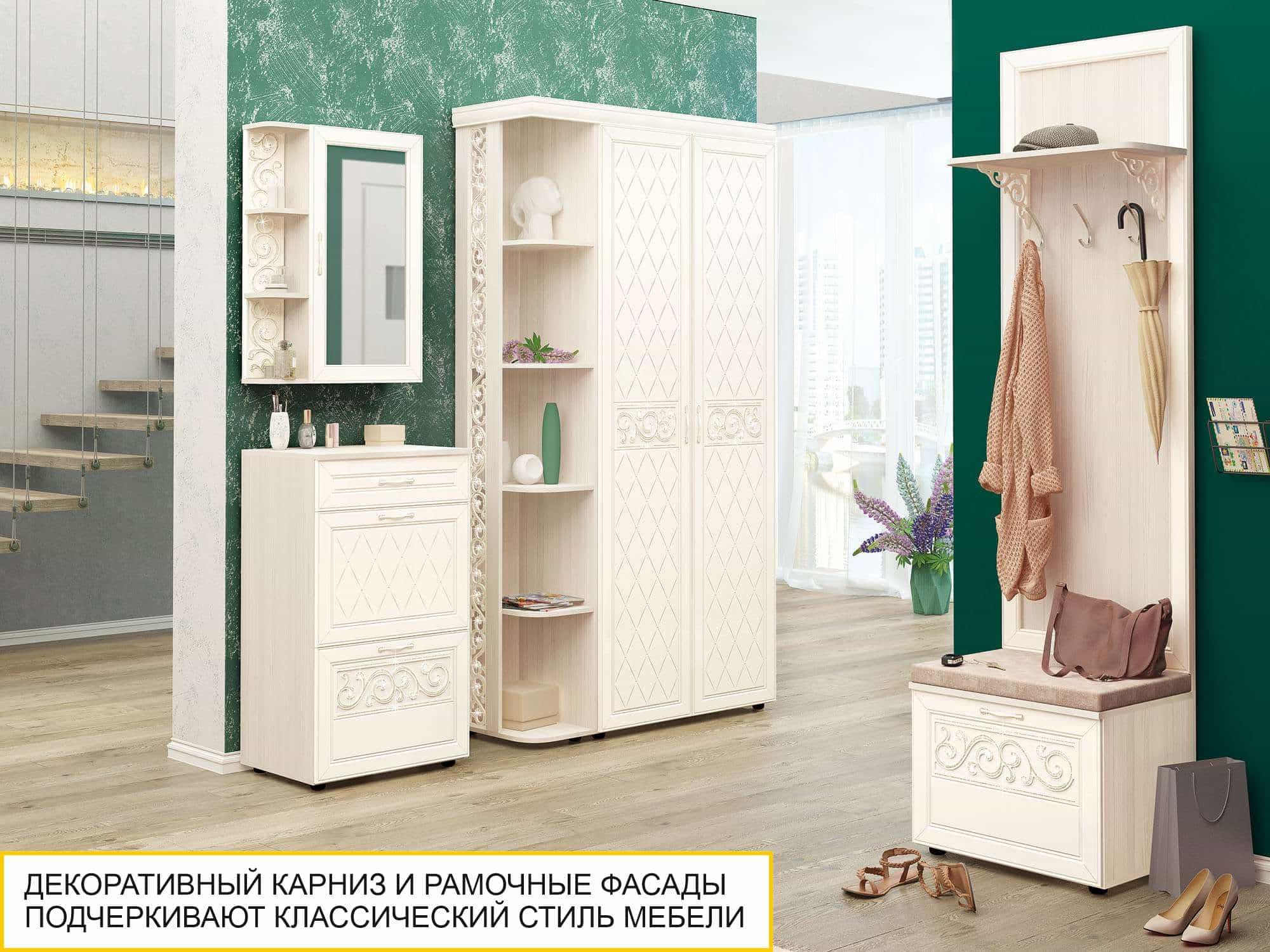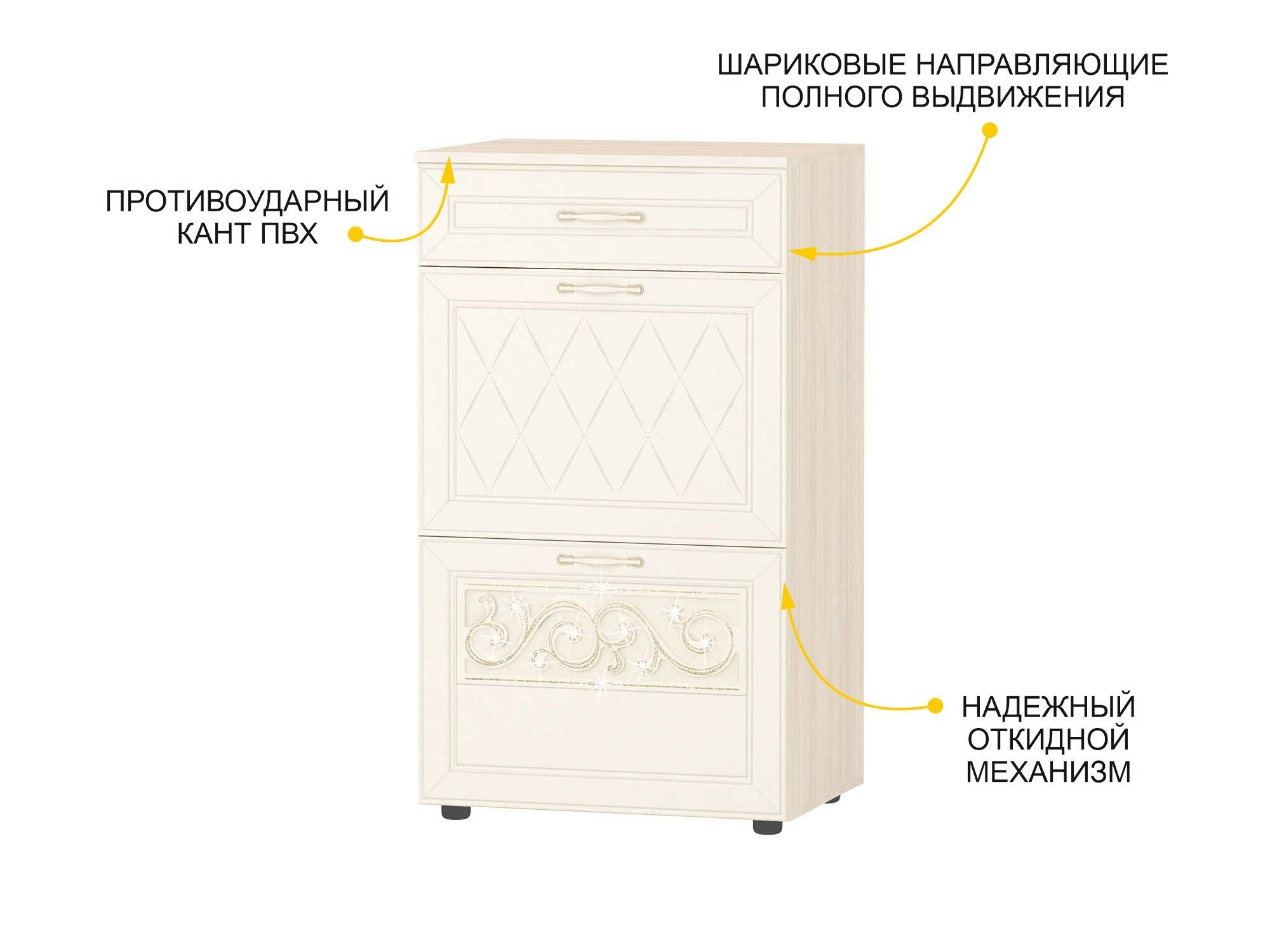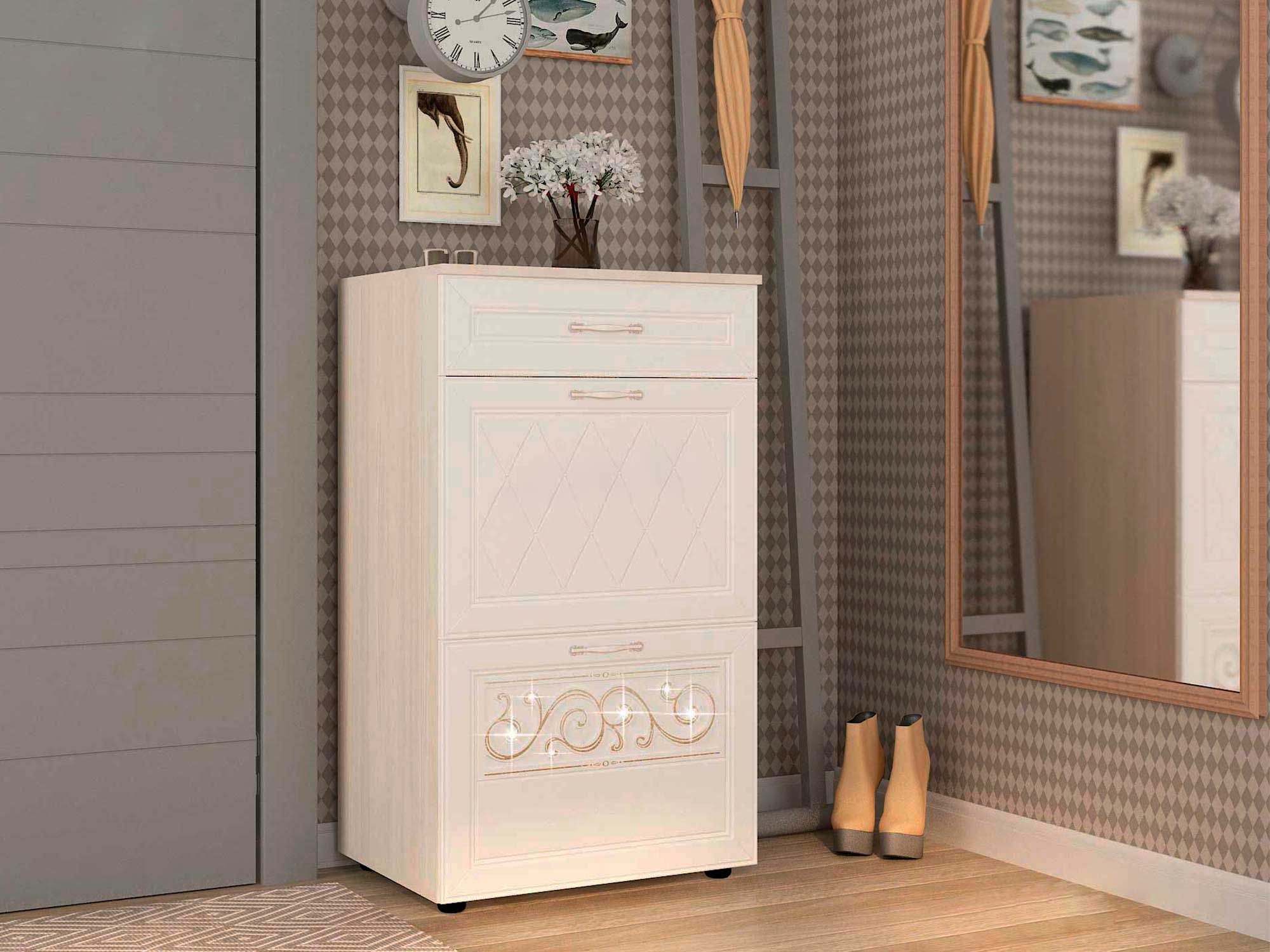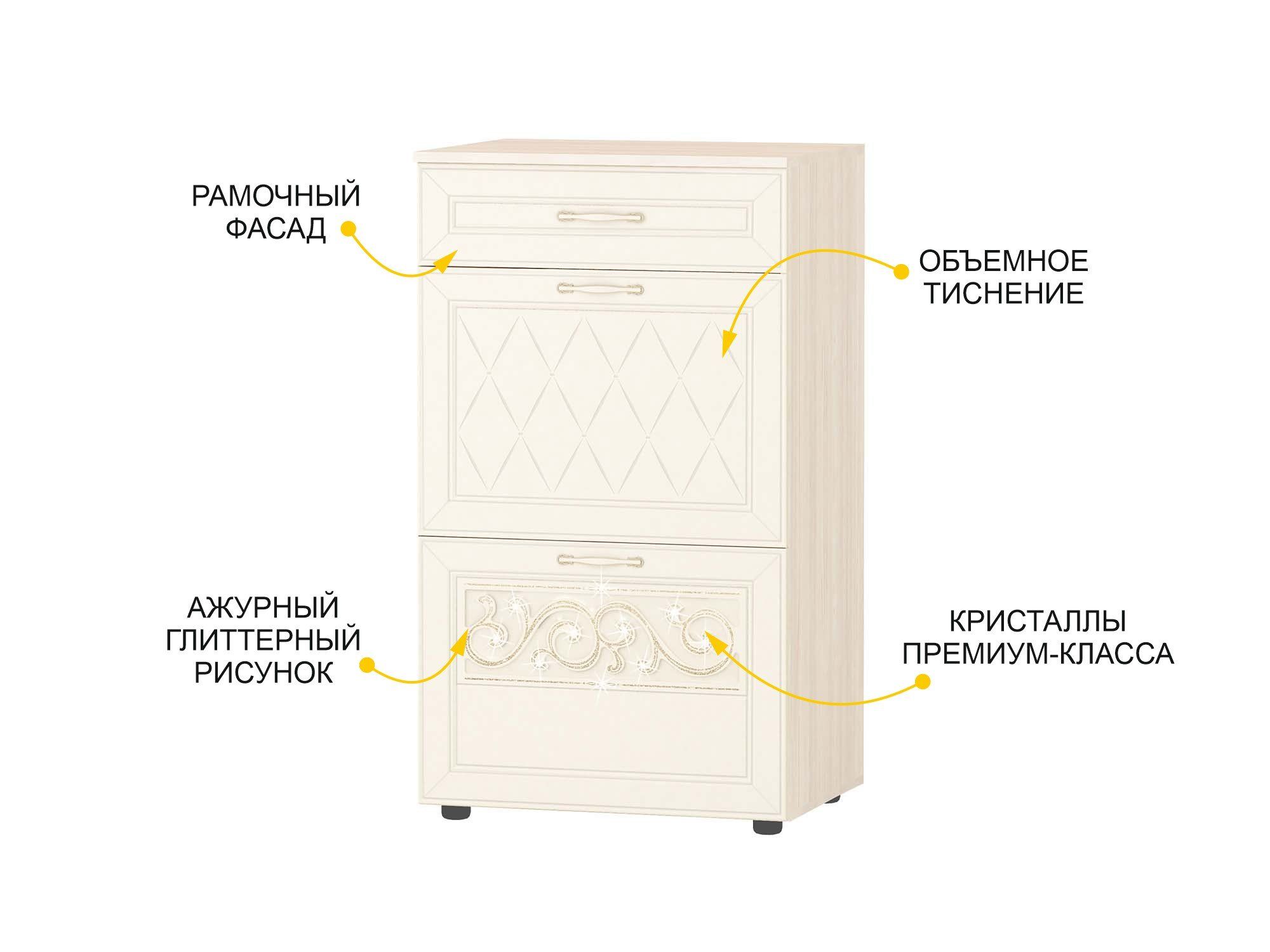 Тумба для обуви «Тиффани 47.11.1» является частью модульной программы «Тиффани». Прихожая «Тиффани» - символ классического стиля и незабываемого шарма. Нежные светлые фасады и изысканный ажурный декор с кристаллами премиум-класса – отличительная черта коллекции.