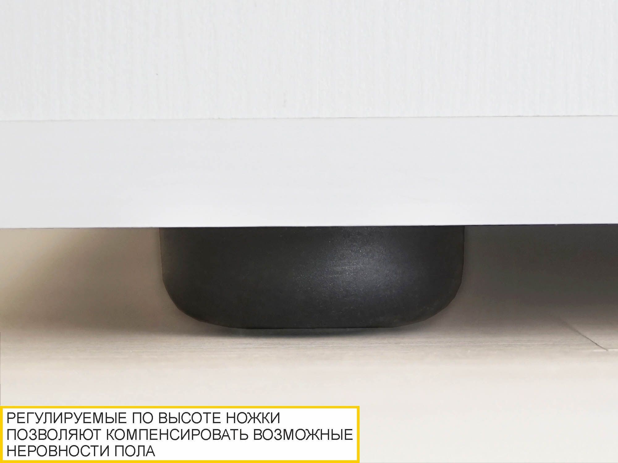 - Ножки модуля регулируются по высоте, что позволяет при установке шкафа компенсировать возможные неровности пола.