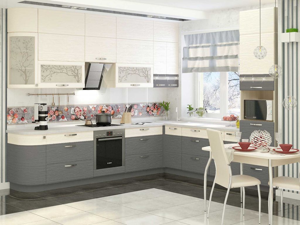 Кухня Графит состоит из 61 корпуса разных размеров. Благодаря широкому выбору, она подходит под любые размеры помещений.