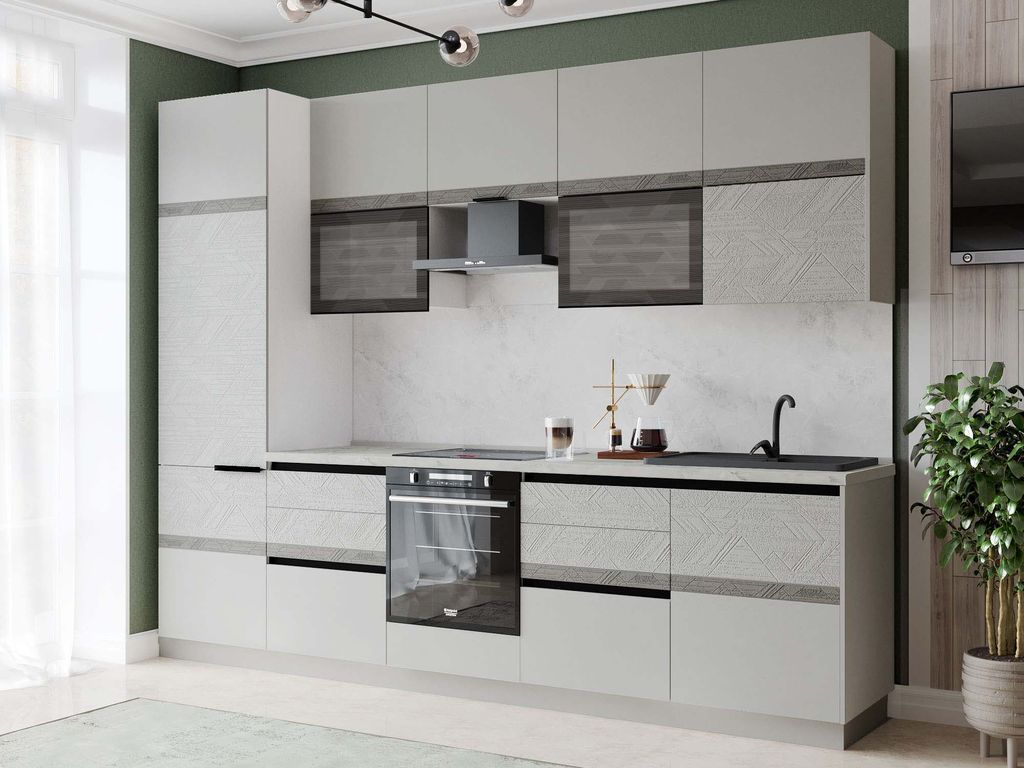 Кухня Бостон размер 302. Корпус выполнен из ЛДСП 16 мм. Фасады из МДФ ПВХ 16 и 25мм. Стекло 4мм.Все открывные дверцы с мягким закрыванием.Ящики комплектуется двумя видами системы выдвижения по желанию клиента. 1. Металл-боксы без мягкого закрывания. Нагрузка на ящик - 20кг 2. Тандем- боксы с мягким закрыванием. Нагрузка на ящик - 40кг Кухня комплектуется влагостойкой столешницей толщиной 38мм Гарантия на кухню - 8 лет! Кухня Бостон состоит из 51 корпусов разных размеров. Благодаря широкому выбору, она подходит под любые размеры помещений. Если Вам понравилась данная модель, пришлите нам размер помещения и Ваши пожелания. Наши дизайнеры абсолютно бесплатно нарисуют и посчитают стоимость кухни под ключ. Стоимость указана за 1 погонный метр. В стоимость не входят мойка, смеситель, а так же бытовая техника