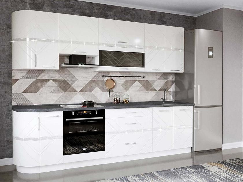 Кухня Бьянка размер 283. Корпус выполнен из ЛДСП 16 мм. Материал фасадов из МДФ ПВХ 16 и 25мм. Стекло 4мм.Все распашные двери с мягким закрыванием.Ящики комплектуется двумя видами системы выдвижения по желанию клиента.
