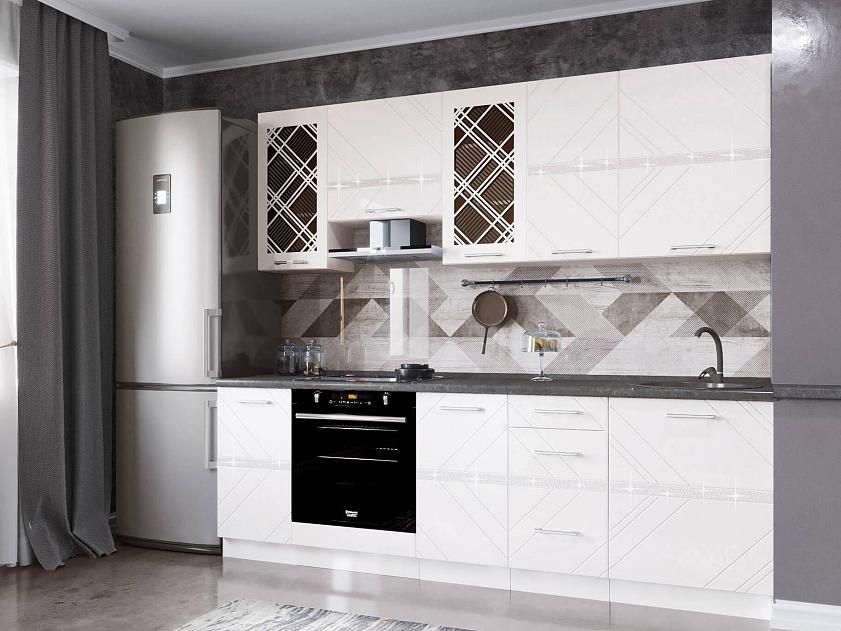 Кухня Бьянка размер 240. Корпус выполнен из ЛДСП 16 мм. Материал фасадов из МДФ ПВХ 16 и 25мм. Стекло 4мм.Все распашные двери с мягким закрыванием.Ящики комплектуется двумя видами системы выдвижения по желанию клиента.