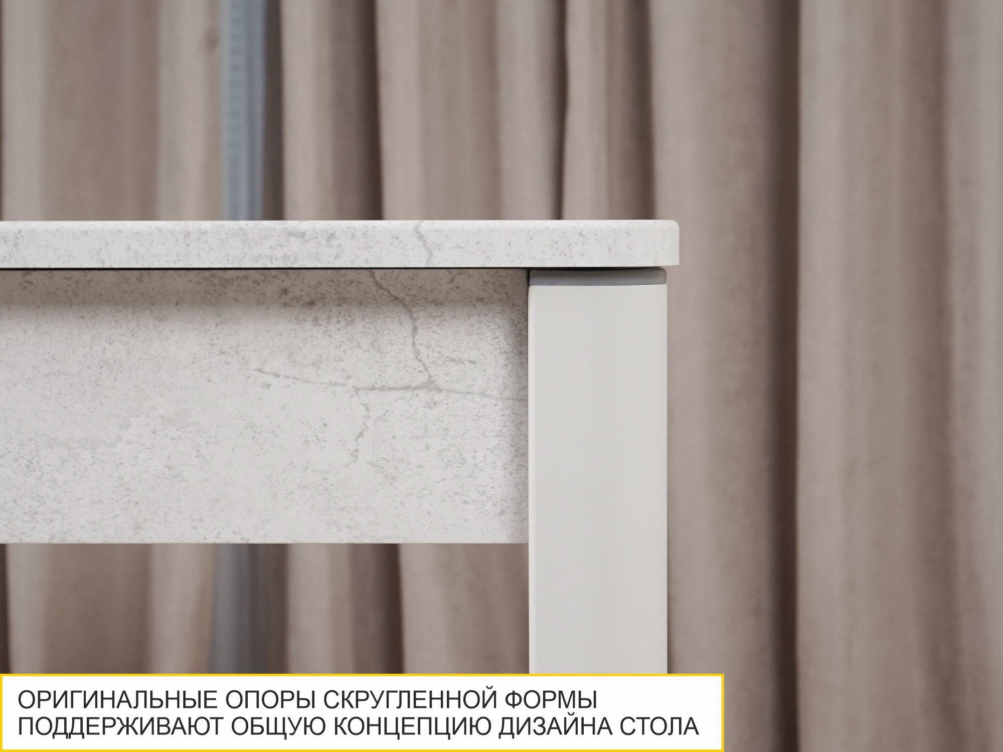 «Орфей 44 Урбан Милк» – это стильный и функциональный обеденный стол-трансформер. Лаконичные скругленные формы в сочетании с трендовым декором столешницы создают особое настроение в интерьере, а светло-серый цвет стола способен наполнить интерьер ощущением спокойствия и стабильности.