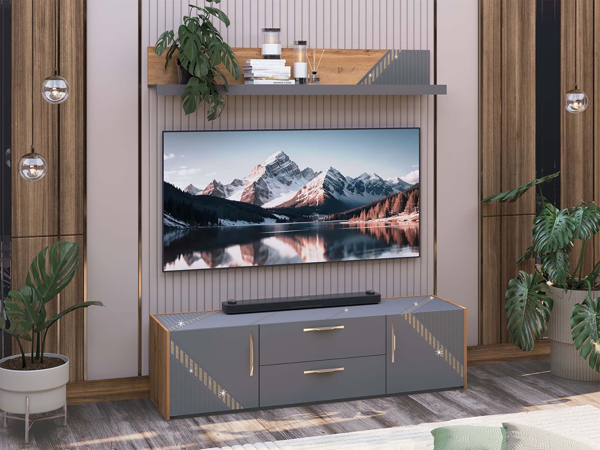 Набор идеально подходит для организации ТВ-зоны гостиной или спальни, а также отлично сочетается с другими модулями коллекции.