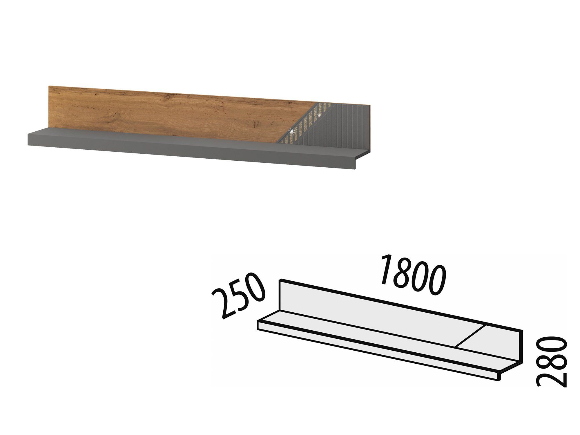 Полка «Монако 605.29» является частью модульной серии «Монако 605». Коллекция «Монако» - это образец элегантного стиля и утонченного вкуса. Сочетание матовой графитовой поверхности фасадов с благородной древесной текстурой создает особую атмосферу гармонии и комфорта.