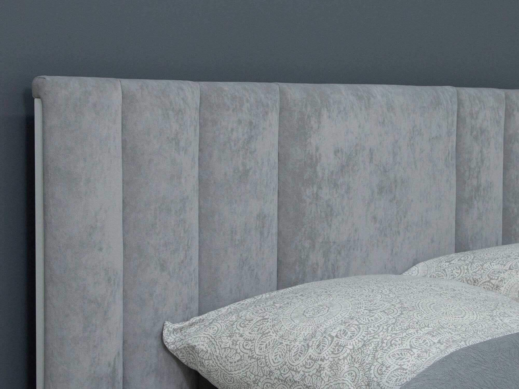 - Спинка кровати выполнена из прочного и износостойкого софт-велюра, отличается повышенной степенью комфорта, что обеспечивается мягким наполнителем и приятной на ощупь тканью обивки.