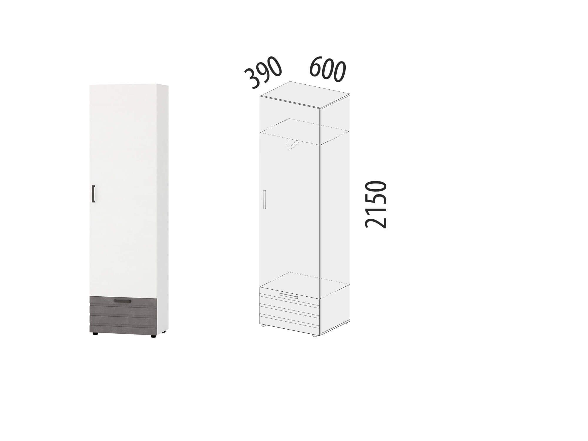 Шкаф для одежды «Денвер 400.01» является частью модульной программы прихожей «Денвер 400». Шкаф укомплектован двумя полками из ЛДСП и штангой для хранения одежды на плечиках. В нижней части шкафа установлен выдвижной полновыкатной ящик. Шариковые направляющие обеспечивают плавный бесшумный ход и длительный срок эксплуатации изделия. Дверцы оснащены петлями с доводчиками. Модуль является универсальным и может быть собран как с левым, так и с правым открыванием дверцы. Необходимо крепление к стене во избежание опрокидывания при открывании дверцы (крепежный уголок в комплекте). Ножки регулируются по высоте, что позволяет компенсировать возможные неровности пола.