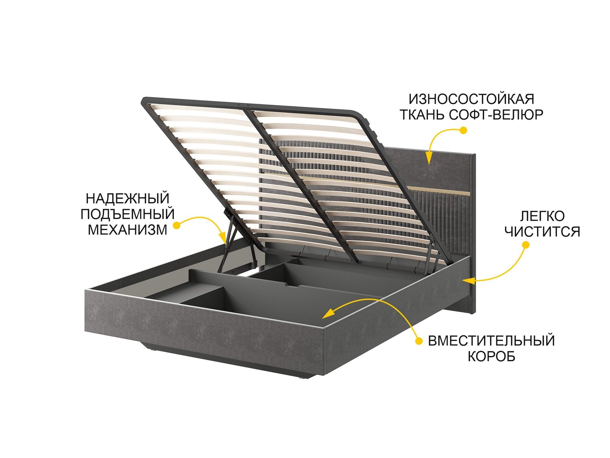 • Современный стиль кровати подчеркивается модным конструктивным решением: эффектом «парения». В основании кровати предусмотрен вместительный короб для удобного хранения одеял, подушек и других вещей. Скругленные углы кровати обеспечивают безопасность и комфорт при эксплуатации.