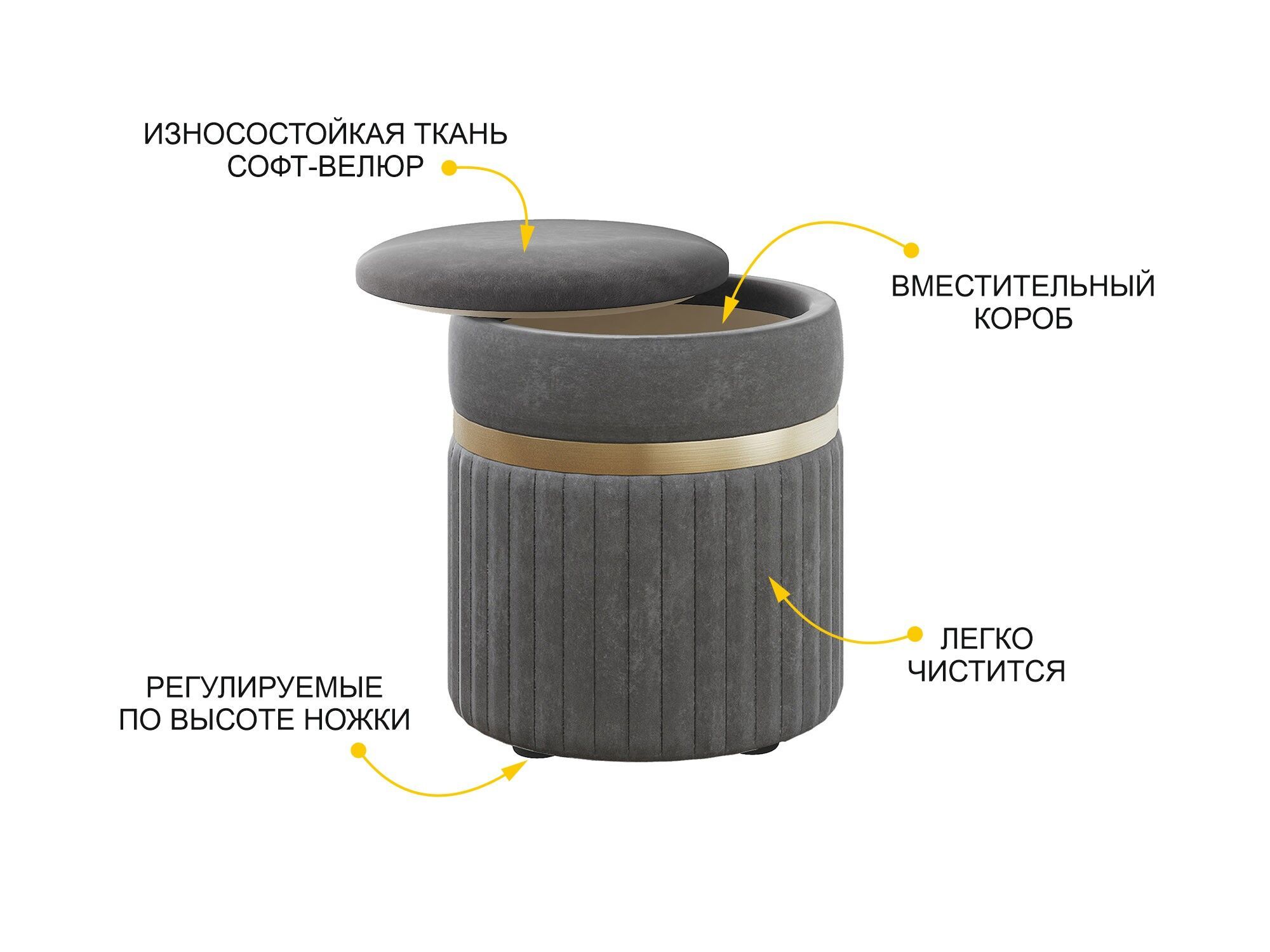 • Внутри пуфика – вместительный короб для удобного хранения, что делает модель более функциональной.