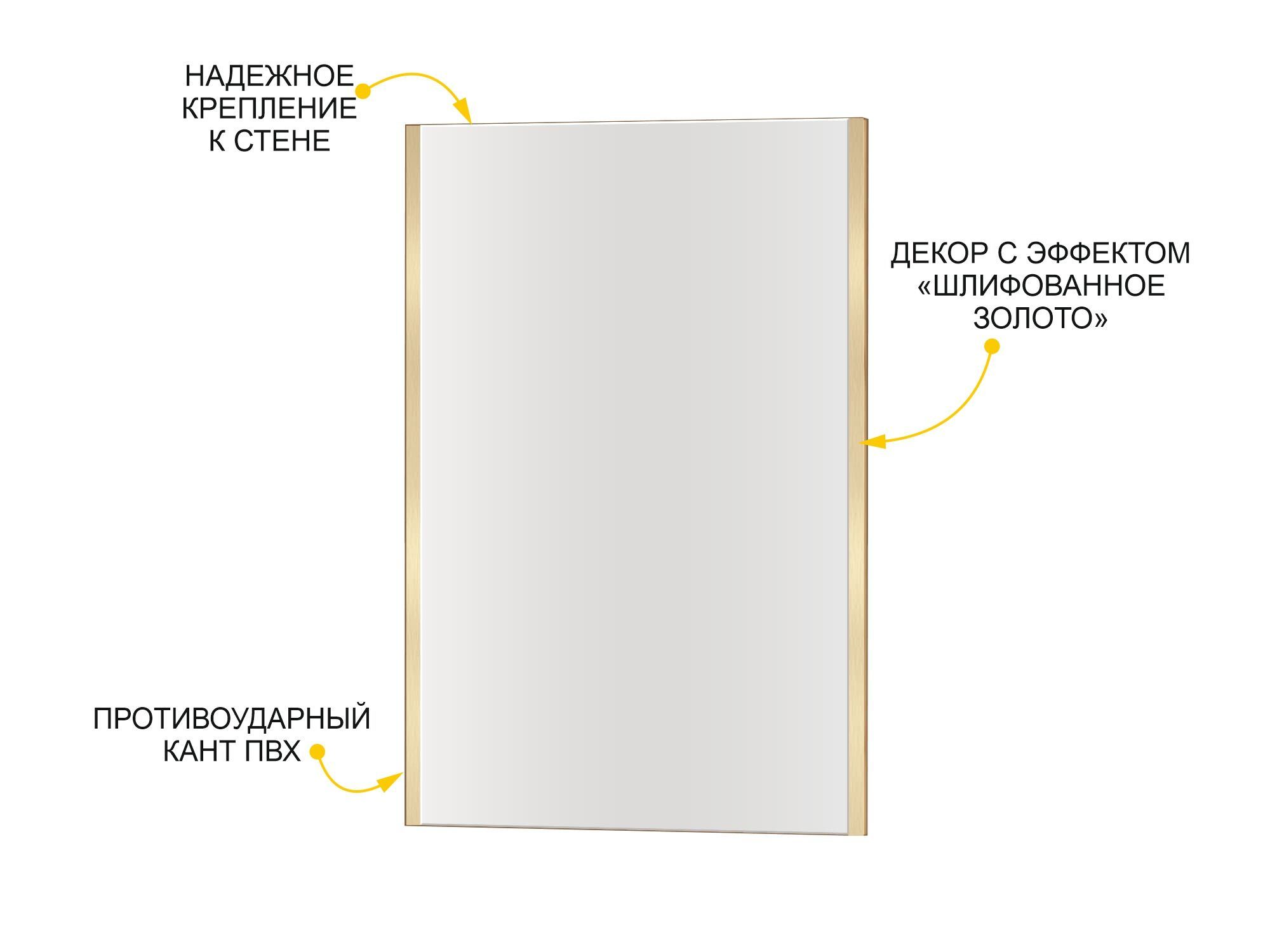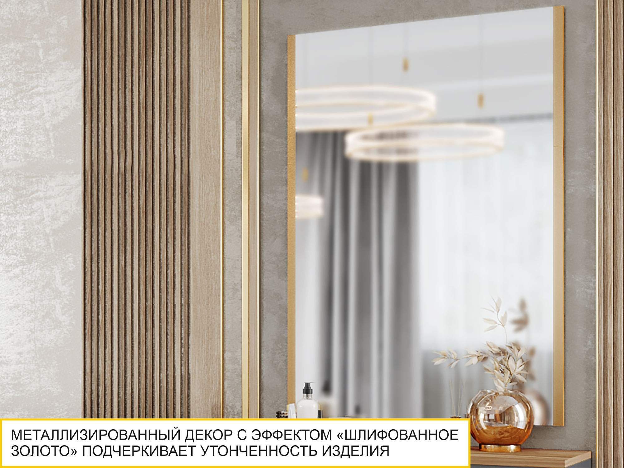 - Панель с зеркалом декорирована металлизированным кантом с эффектом шлифованного золота, что подчеркивает утонченный внешний вид изделия. Покрытие на элементе устойчиво к истиранию и не тускнеет со временем.