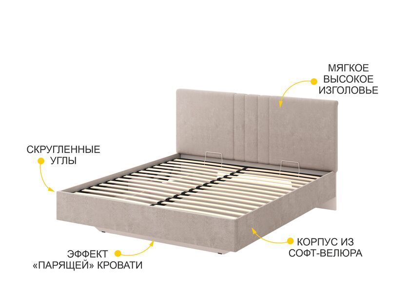 - Современный стиль кровати подчеркивается модным конструктивным решением: эффектом «парения». Скругленные углы кровати обеспечивают безопасность и комфорт при эксплуатации.