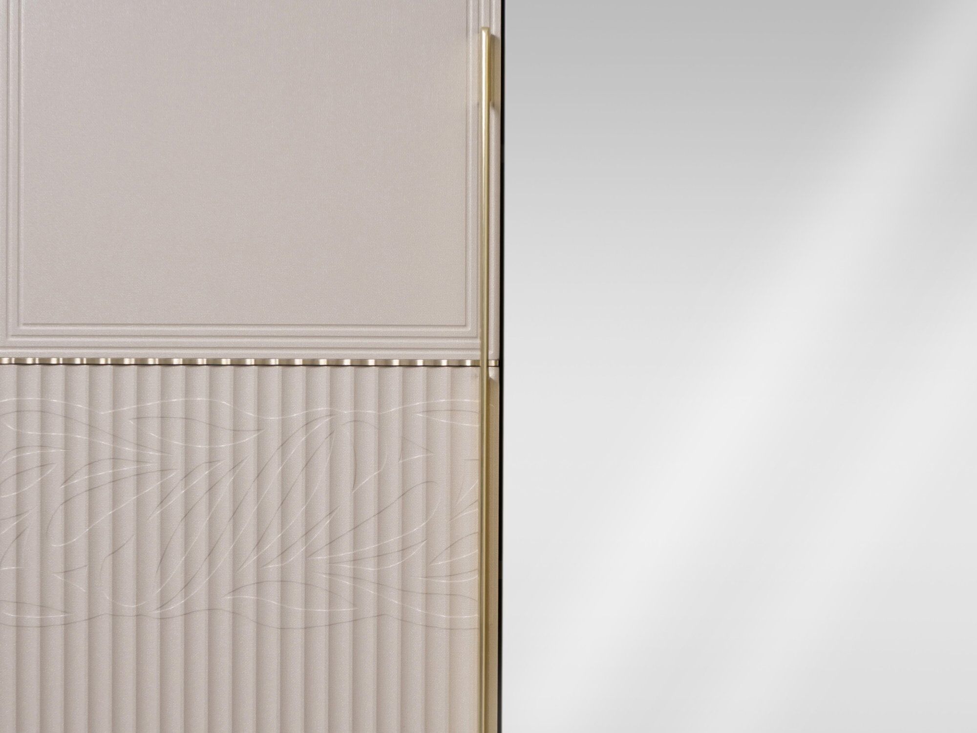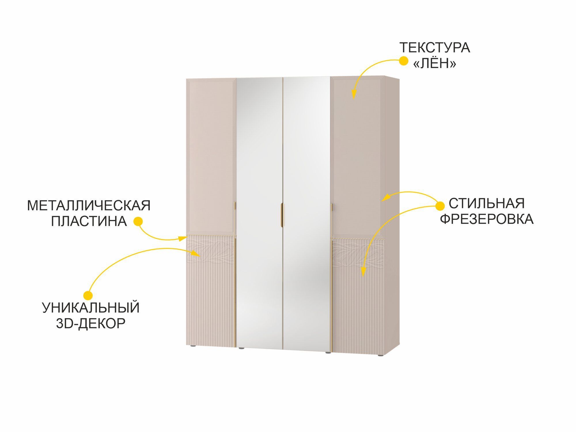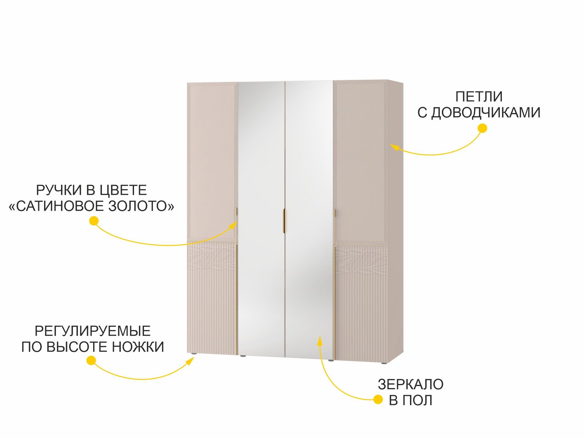 Четырехдверный шкаф с зеркалом «Флоренция 904.14» является частью модульной программы «Флоренция». Спальня «Флоренция» – это образец изящности и современной роскоши. Нежный цвет «Кашемир» создает светлую и теплую основу в интерьере, которая наполняет пространство спокойствием и гармонией.