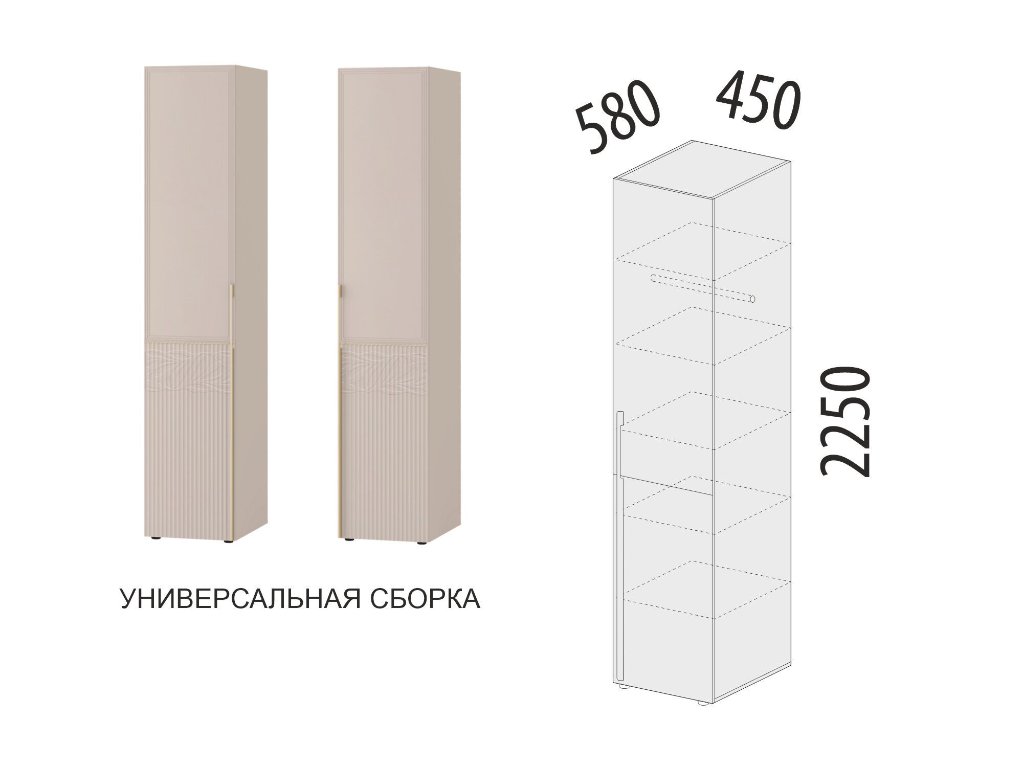 - Модуль является универсальным и может быть собран как с левым, так и с правым открыванием дверцы.