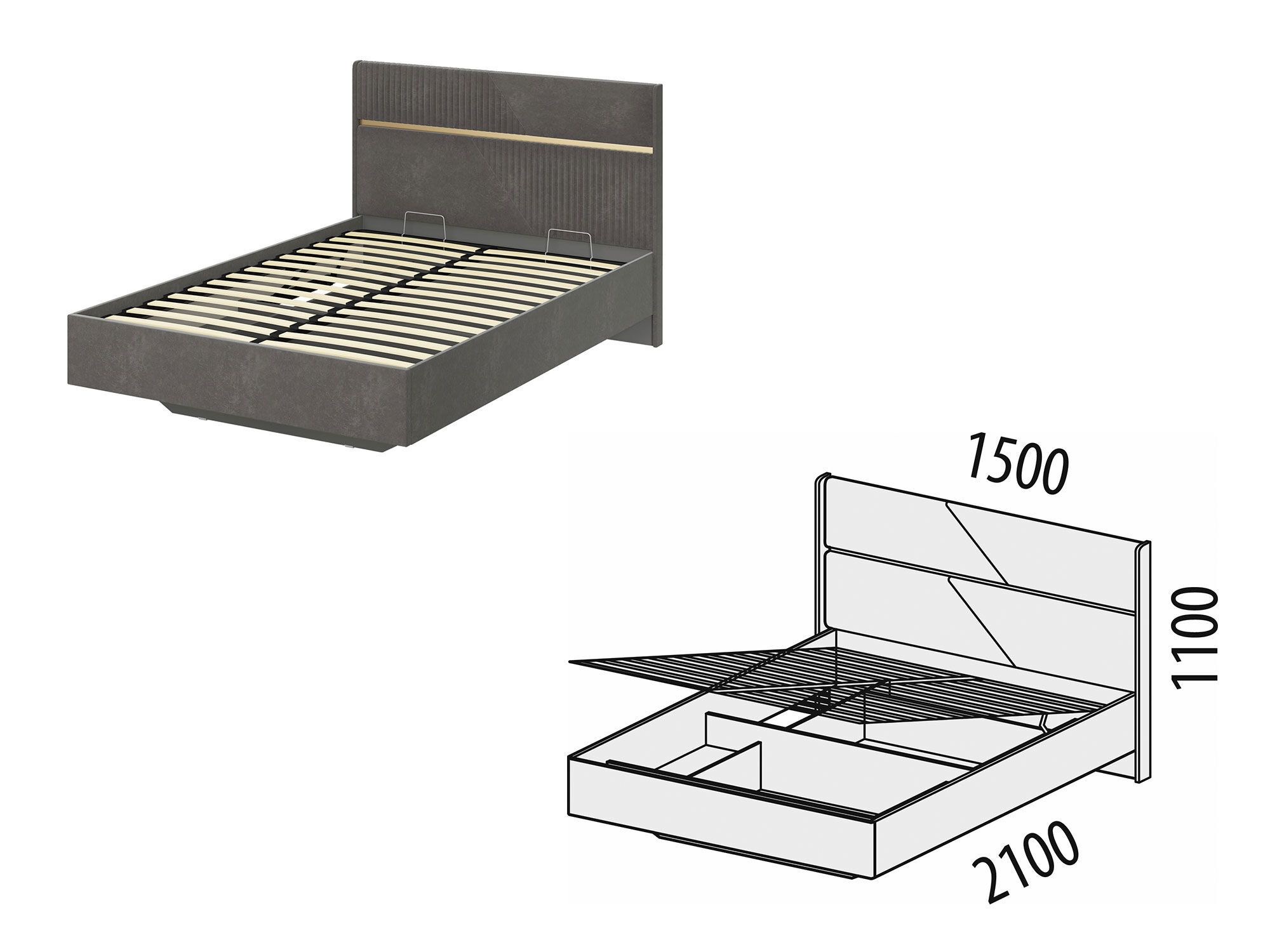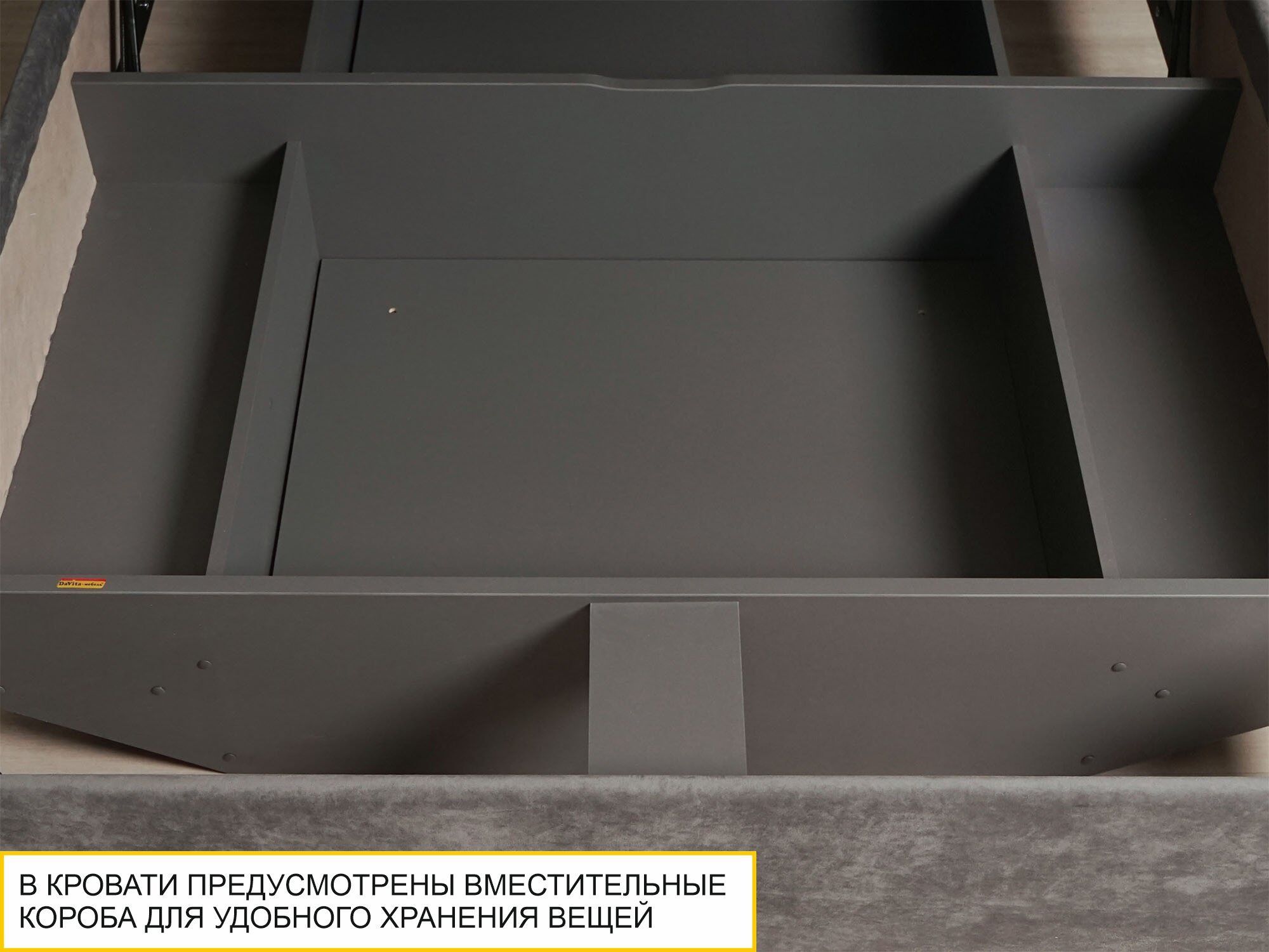 • В кровати предусмотрен вместительный короб для удобного хранения одеял, подушек и других вещей.