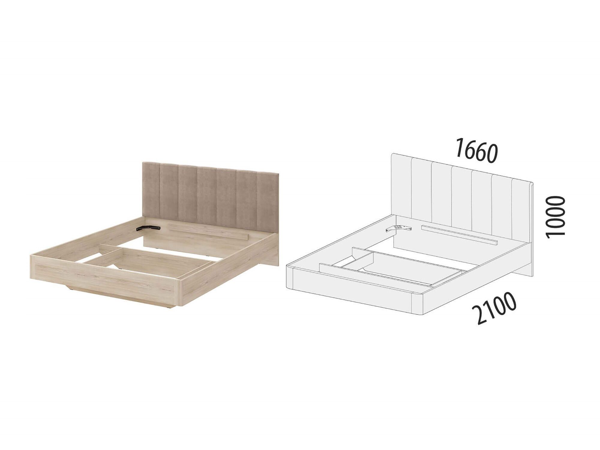 - Каркас кровати выполнен из ЛДСП толщиной 16, 22 и 32 мм.