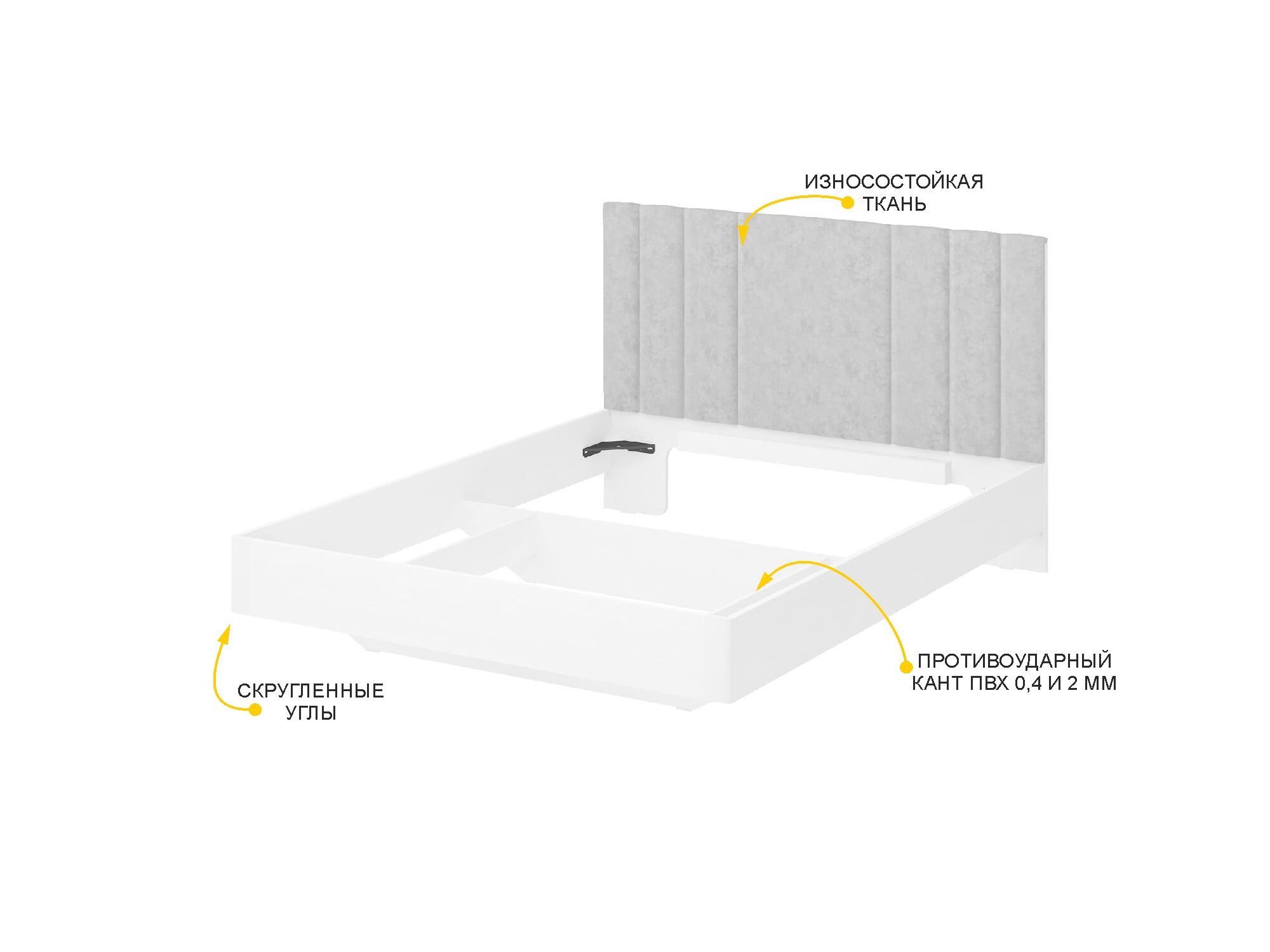 - Спинка кровати выполнена из прочной и износостойкой ткани, приятной на ощупь.