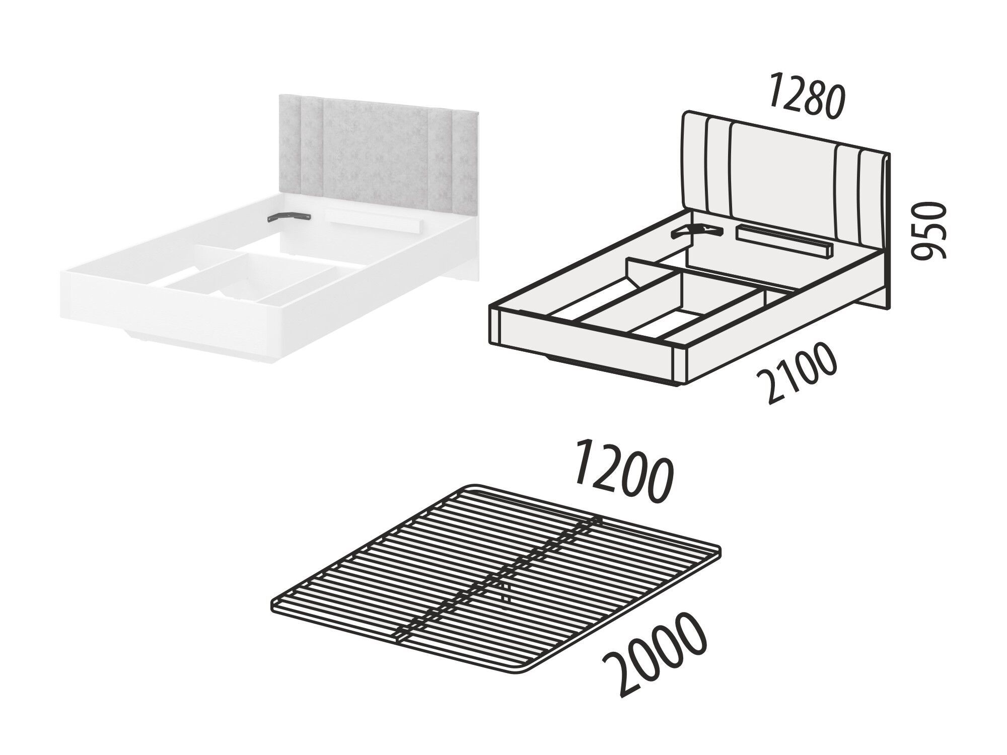 Размер спального места – 1200x2000 мм.
