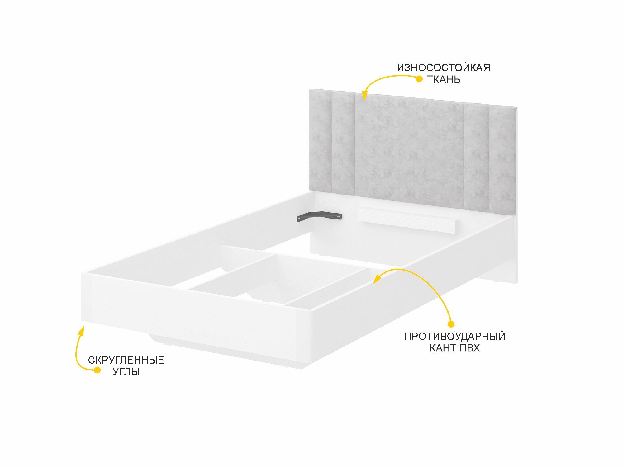 - Спинка кровати выполнена из прочной и износостойкой ткани, приятной на ощупь.