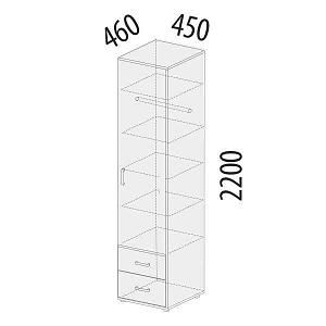 Шкаф-пенал «Эверест 500.22» является частью модульной программы «Эверест». За дверью установлена штанга для одежды и вкладные полки. Благодаря такому решению можно выбрать функционал шкафа: либо вешать на штангу верхнюю одежду, либо хранить вещи на полках. Плавное закрывание дверки обеспечивают петли с доводчиками. В нижней части шкафа-пенала установлены два выдвижных ящика. Ножки модуля регулируются по высоте, что позволяет при установке шкафа скорректировать неровности пола. Шкаф-пенал можно использовать не только в сочетании с другими модулями подростковой, но и как отдельный предмет мебели.